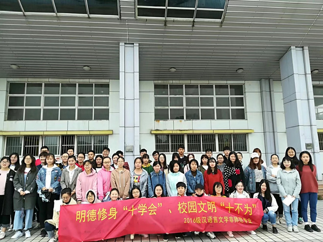 在学校九十周年校庆到来之际,为进一步增强学生爱校荣校意识,展现学生良好精神面貌,以实际行动表达对母校的真挚祝福,2016级汉语言文学(非师范)专业在辅导员周青松老师的指导下开展了以“迎校庆,讲校史,树新风”为主题的系列教育活动。