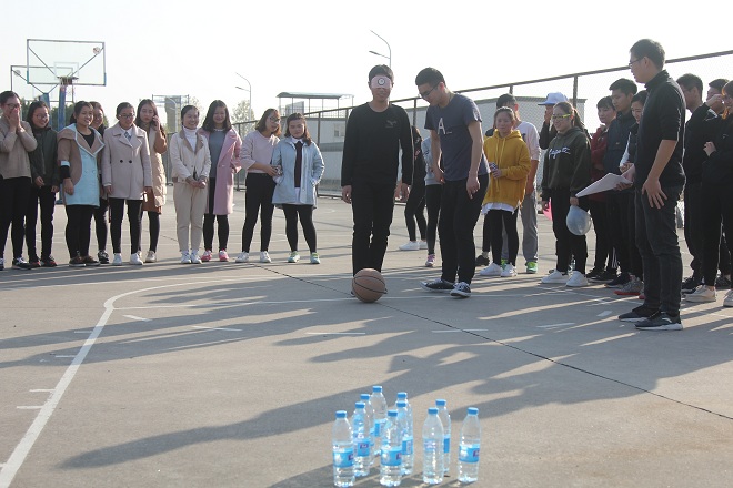 本次趣味运动秉承“展我风华之茂,扬我文院之姿;继先人之精神,壮学生之体魄”的宗旨,共设计出六个富有趣味性的项目:我唱你投球的情投意合、蒙眼踢球的心有灵犀、三人四足的凌波微步、五毛一块的抱团取暖、手撕名牌的狭路相逢、全员拔河的齐力断金。参赛选手分为五组进行比赛,各组选手在比赛中各显神通。在情投意合项目中,为了唱出带有关键词的歌曲,为队友赢得投篮机会,场上的队员绞尽脑汁,调动大脑的每一个细胞;在心有灵犀比赛中,踢倒全部障碍物的那一刻,全队欢呼;在凌波微步项目中,选手们也不顾“形象”,想尽各种方法,为的是队友的give me five;在抱团取暖的比赛中,需要队员的快速反应和配合;在狭路相逢项目中,巾帼不让须眉;在全员欢呼声中我们迎来了最后一项——齐力断金,随着裁判的一声哨响,每位参赛队员的面部表情都变得丰富起来,使出浑身解数往自己的方向拉动红色绳子。经过几轮比赛的角逐,最终第三小组摘得桂冠,其他小组也以微弱的差距分别带走了他们的奖品。