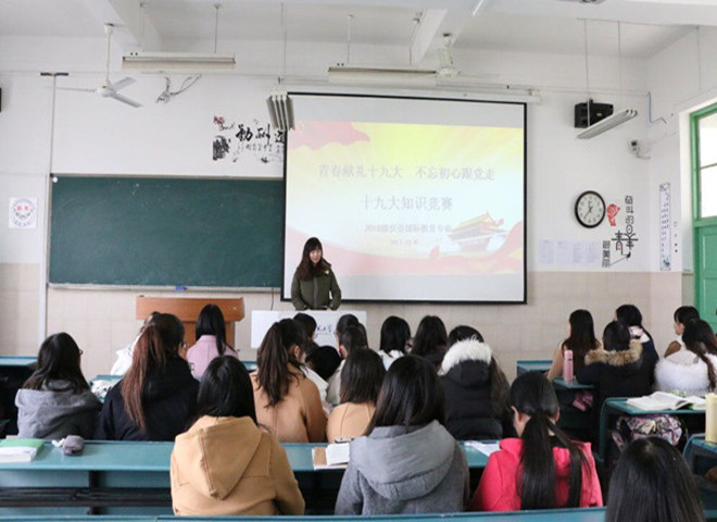 用新思想武装新头脑,用新使命凝聚青春力量。15汉教全体同学在汪旭老师的组织下,以党员带动团员,形成“以讲促学、讲学互促”的学生自我学习教育机制,让十九大精神在同学们心里落地生根。正如团支书王丽丽同学在总结时所说:“我们要自觉承担起当代青年人的使命,学习十九大理念,践行十九大精神,做一个有担当,有责任,有作为的新青年,为实现伟大复兴的中国梦贡献自己的力量!”(15汉教 崔晓涵)