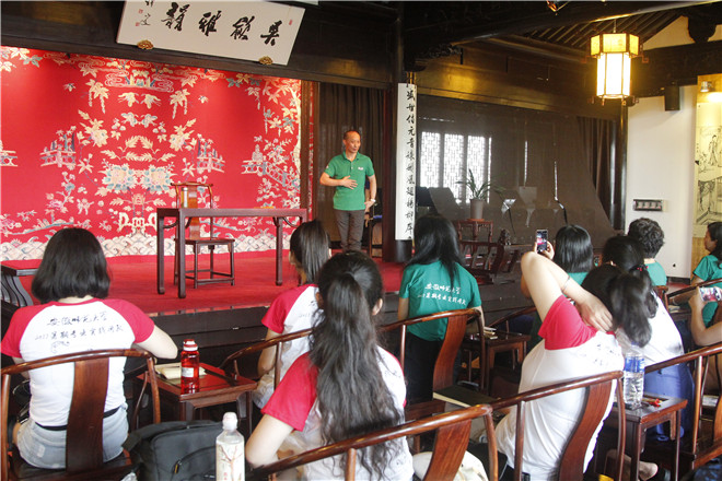 8月1日,苏州昆剧院党委书记、国家一级演员吕福海为实践团队发表致辞,对我校师生的到来表示热烈的欢迎,同时,他也很欣赏我校师生对昆曲的这份热情,希望我校师生能够完满地完成本次的学习任务。此外,苏州昆剧院还为实践团队配备了两位优秀的青年演员徐超、李洁蕊全程辅导教学。