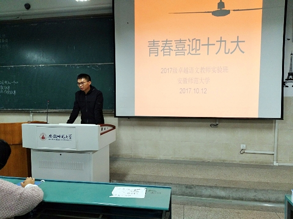 10月12日晚,2017级卓越语文教师实验班在2010503教室开展主题团日活动。17级卓越语文教师实验班全体同学参加了此次活动。