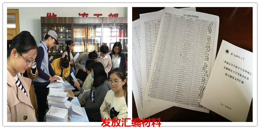 八月末,2014级辅导员朱露露在各专业QQ群里上传了新修订《普通高等学校学生管理规定》等相关文件,要求同学们仔细阅读文件,明确新的管理方案,做到“心中有数”。同学们纷纷响应,在线上进行了积极讨论。九月初,在2014级汉语言文学非师范专业实习动员会上,朱露露老师面对面向同学们宣读了相关文件,着重强调了我校的具体实施办法以及违纪处分规定,告诫同学们要重视文件,严守规矩。线上线下的联动,使同学们对于文件有了基本的认识。