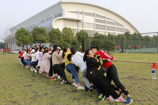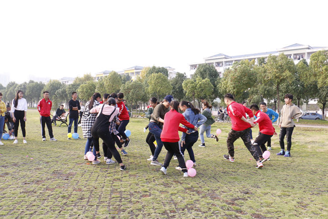 活动伊始,由两个班团支书李心茹、何蓉蓉主持,讲述活动流程,两班共分为七个团队,由男生担任队长,带领队员讨论组名,队员之间相互介绍,加深了解。接着活动正式开始,游戏一需要分工合作,锻炼同学们沟通配合能力,每两队进行比拼,每组六人,主持人请每组每人进行抽签,队员再根据抽签内容合力完成每项任务,时间最短的团队获胜。每个团队齐心协力完成目标,有的顺畅无阻,有的状况百出,都为同一目标不懈努力,在活动过程中增添了一份默契,一份收获。第二个环节是踩气球游戏,每个队伍需要在活动开始后踩破对方的气球并保持自己团队的气球不破,最先踩完的团队获胜,游戏过程精彩刺激,同学们在奔跑策划中增进协调协作能力,气氛热烈,每队呐喊声不断,朝气蓬勃。之后,两个专业进行拔河比赛,双方成员凝心聚力,随着“开始”的呼声,纷纷将绳子拉往胜利的方向,淋漓酣畅的拉锯战后,2016级戏剧影视文学获得胜利。