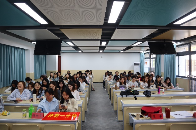 教学技能复赛要求选手从现行初高中统编教材中自选课文,撰写一课时教学设计,讲解八分钟教学片段,制作教学课件,进行无生授课。这种赛制全面考察选手的文本解读、课堂组织、语言表达及教育创新等能力。二十位选手依次登台,以生动的语言、精彩的解读、丰富的肢体动作、出色的板书设计将课堂“搬”到赛场。2024级章蓁蓁讲授的《使至塞上》巧妙融入情景教学法、跨学科整合等新理念,带领学生鉴赏颈联中“直”和“圆”的绝妙之处;2023级郭静雅从“月生、月悬、月斜和月落”的四重维度解读《春江花月夜》中“月”这一核心意象,激发学生思维碰撞;2023级赵怡鸽通过细解《沁园春·长沙》中的“谁主沉浮”,带领同学体会青年革命者的昂扬风貌、坚定信仰和远大抱负;2024级李笑嫣从改写《登高》中的颔联入手,从空间角度赏析“无边”“不尽”两个词语的精彩之处;2023级王雪晨以独特的视角分析《装在套子里的人》的叙事人称,“我”和“我们”的人称探究让学生深入体会作品的深意和独具匠心。二十位选手们精心设计的教学流程、新颖独特的教学方法,充分展现出扎实的教学功底和与时俱进的教学思维,同时也在比赛中锻炼了自己,提升了教学技能。2024级学科教学(语文)专业全体同学现场观摩选手们的精彩表现。
