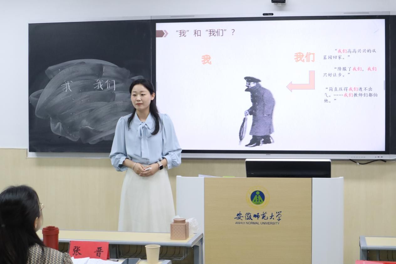 赛后,崔聿老师对选手们的亮点与创新之处给予肯定,同时也对同学们的教学提出几点宝贵的建议:“首先,要注重教学设计的规范性和结构化,聚焦文本的关键处,以小切口撬动文本解读;其次,慎重选用外部资料,考虑引用的图片、音乐和名言是否会干扰学生对文本的理解;最后,教学用语不能过于学术化或口语化,把握好与学生亲近的‘度’,注意教学声音的掌控和教态的得体。”