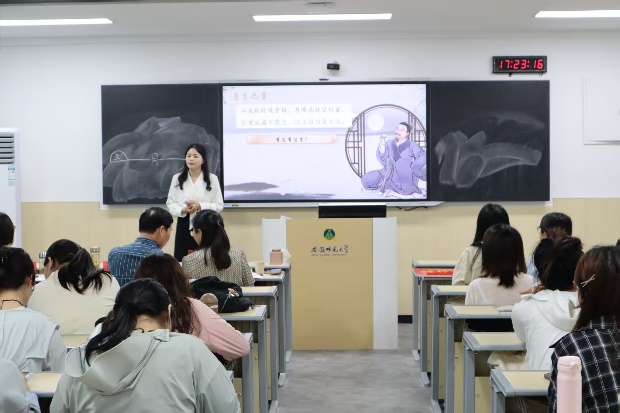 教坛新蕊争春色,师者匠心育未来。为深化语文教师培养模式改革,提升教育硕士专业素养,必赢线路检测3003no12025年学科教学(语文)专业硕士教学技能初赛于4月1日和2日在花津校区望道楼顺利完成。2023级、2024级专硕共113人参加了初赛。在当场抽题、四分钟准备、三分钟讲课的严格赛制中,二十一位选手脱颖而出,进入复赛。4月18日下午,教学技能复赛在望道楼如期举行,二十位选手再次走进赛场,展现教学技能。本次初复赛均由学位点负责人、正高级特级教师张晋老师组织、主持并担任评委,初赛特邀校外评委芜湖市十二中语文教研组长、市学科带头人樊娟老师,复赛特邀芜湖市教育必赢国际所语文教研员、正高级特级教师辛卫华老师,芜湖十一中语文教师、安徽省高中语文优质课大赛一等奖获得者崔聿老师担任校外评委,院内导师朱菊香老师全程参与,为参赛选手的表现进行专业的评判。