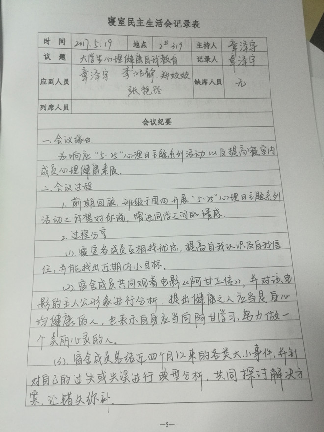 寝室民主生活会,真诚的交流