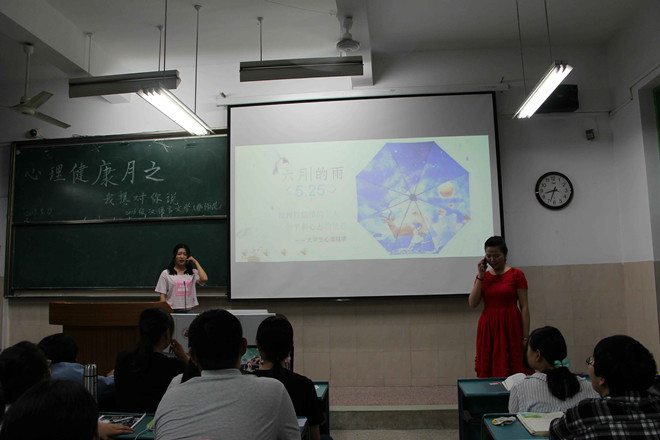 刘畅、杨韵箫等同学“现身说法”,以心理剧《六月的雨》活灵活现地表现了大学生的心理健康问题。室友间、同学间、异性间如何相处?心理剧以诙谐幽默的方式为同学们上了生动的一课,让同学们在欢声笑语中学会了如何去处理人际关系。