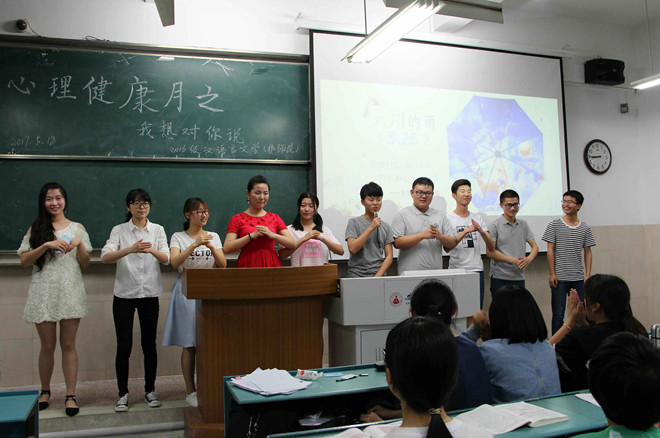 为进一步提高同学们的心理健康水平,不断增强同学们情感表达、情绪管理、情绪调节的能力,在“5·25心理健康日”到来之际,2016级汉语言文学(非师范)专业开展了“我想对你说”为主题的心理健康教育系列活动。