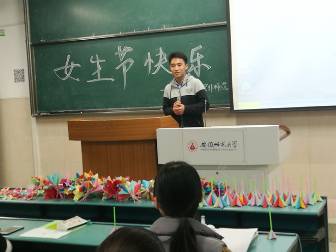 女生节,于20世纪90年代初起源于山东大学,发展于中国各高校,是校园趣味文化的代表之一。3月7日,16汉语言文学非师范班的男生们别出心裁,精心为本班女生准备了一场暖心的女生节活动。