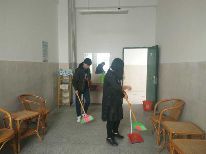 从宿舍楼到校园道路再到教学楼,每一个地点都能看到同学们忙碌的身影。他们有的自带卫生工具清扫校园道路垃圾;有的整理食堂门口摆放杂乱的热水瓶;有的整理自行车库东倒西歪的自行车;有的擦拭宿舍楼中楼道的门窗并清扫楼道瓷砖上的灰尘;有的打扫一至五栋教学楼各个楼层的教师休息室。无论哪一个小分队,大家都干的热火朝天,以实际行动助力美丽校园的建设。