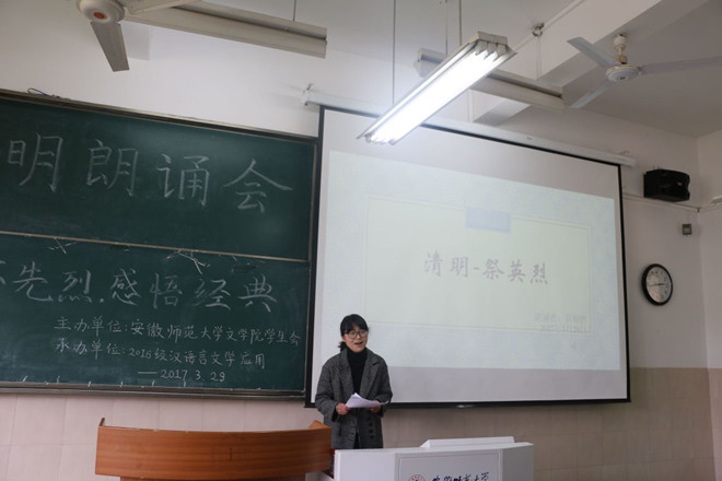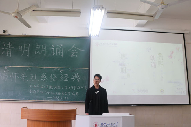 为进一步结合传统节日和学院特色拓展思想政治教育的途径,丰富校园文化生活,3月29日,必赢线路检测3003no1举办以“缅怀革命先烈,感悟文学经典”为主题的清明朗诵会。本次朗诵会由必赢线路检测3003no1学生会主办,2016级汉语言文学(非师范)专业承办,邀请必赢线路检测3003no116级辅导员周青松老师、德雅书院诵读班负责人张忆童、读者协会副会长丁佳洁以及学生代表担任评委。