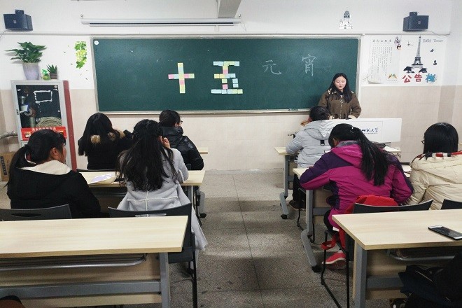 传统的元宵习俗自然少不了猜灯谜。班委将灯谜在黑板上排成“十五”字样,灯谜有难有易,同学们发挥才智,简单的谜底手到擒来,一些古怪的谜面也都在大家的合作思考下被猜中,难度大的答案揭示后,大家纷纷惊叹传统文化的魅力,最终,猜对对多谜底的同学将获得奖励。古老的灯谜活动,既益智怡情,又让我们感受到别样的乐趣。