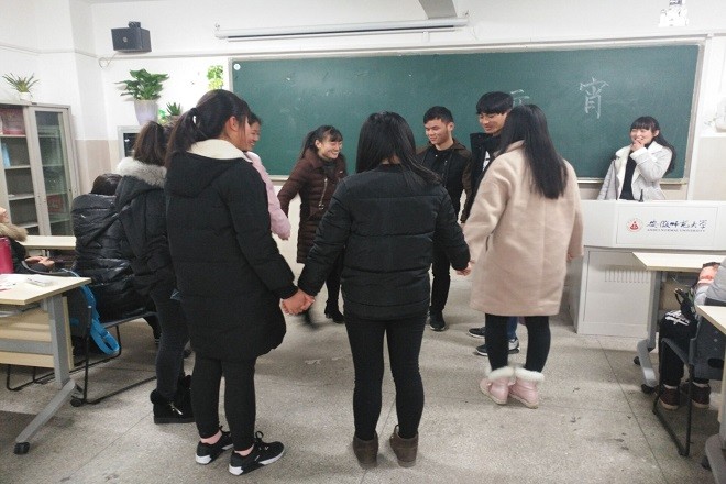 紧接着,团支书李心茹组织大家进行游戏环节,“抱团”游戏中,大家在号令下与身边的同学抱成团队,而落单者则要接受惩罚。同学们敞开心扉拥抱彼此,珍惜来之不易的友谊,而在“谁是卧底”游戏中,同学们各展演技,话语间虚虚实实惹出不少笑料,使全场气氛热闹无比,欢笑阵阵。