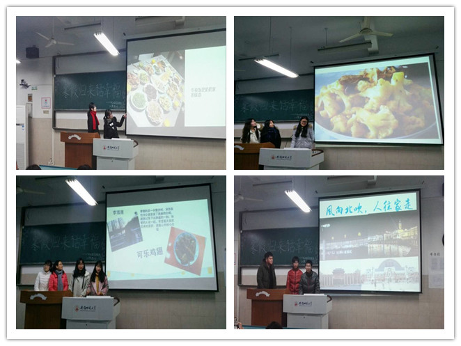 “看山看水,与你在一起,安安静静,不言不语都是好风景……”伴随着舒缓的音乐,15汉教专业“寒假归来话幸福”主题分享会于2月20日晚在固定教室举行。活动首先通过视频回忆了过去三个学期的时光里每个寝室的成长、变化以及一起玩过的游戏、记录下的美好。随后,由各寝室依次上台分享自己寒假里的“小幸福”。为了能更好的展示自己的想法,大家通过制作PPT、视频等多种方式讲述自己的寒假故事:宣纸走墨写对联是101寝室的特色,煎炒蒸煮地方菜乃223寝室的风格,裁剪雕刻迎新年非323莫属……在中国的传统节日里,大家纷纷拿出自己的一技之长迎接新春佳节的到来。一张张全家福、闺蜜照、风景照,一盘盘可乐鸡翅、蒜泥西兰花等美味佳肴,这些看起来再日常不过的事情,都是同学们眼中的“小幸福”。在分享会上,同学们还特别用心的为大家带来了自己家乡的传统小吃,一帧帧温馨的照片将无数种细小微妙的幸福瞬间凝聚成巨大的能量,让在场的每一位同学都愈加发现生活原来如此温暖与美好,幸福其实就在身边。