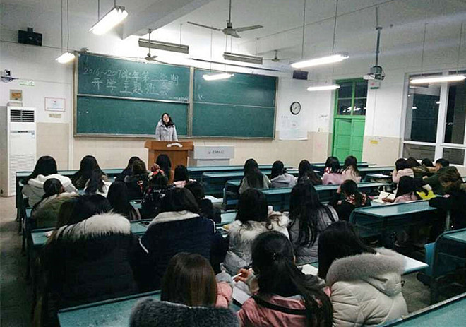 2月12日晚,2015级汉语国际教育专业于固定教室召开“2016—2017学年第二学期开学主题班会”,由辅导员汪旭老师主持,汉教全体同学参加。班会分为“调整状态,开启校园模式”、“制定目标,努力全面提升”和“美丽青春,怀抱微笑生活”三大块,汪旭老师结合身边时事热点分别从安全、学习和生活三方面做温馨提醒,并再次强调禁止晚归不归、禁止私自离校、禁止使用违规电器及禁止考试作弊等“红线”问题。最后,辅导员就期末成绩分析、重缓考事宜、第三轮选课及即将举办的教学技能大赛等与同学们密切相关的事情做了说明和叮嘱。在班会即将结束时,汪旭老师寄语同学们:“愿大家可以在新的一年里成为有礼貌、有气质、有见识,能写作、能做事、更成熟的人”,大家纷纷表示已整装待发,期待更好的自己。