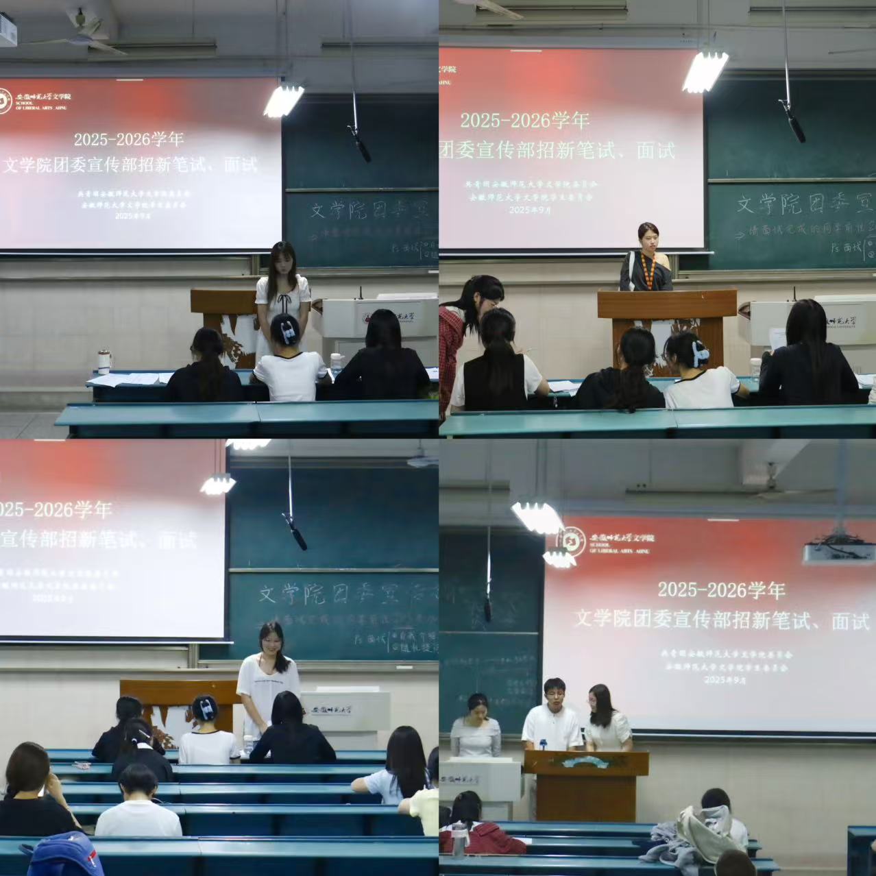 多元选拔,共筑青春梦想。9月26日晚,各学生组织迅速转入面试选拔阶段。本次招新面试采用多元选拔方式,全面考察新生的综合素质与岗位匹配度。学生会学习部采用小组讨论形式,让新生围绕特定话题展开讨论,充分展现其逻辑思维与团队协作能力。其他部门则结合“笔试+面试”的方式,既考察新生的基本文案能力与逻辑思维,又通过个性化问答深入了解其个人特质与参与动机。面试过程中,新生们准备充分、表现积极,展现了良好的精神风貌与参与热情。工作人员组织有序、服务周到,为新生提供了良好的面试环境。
