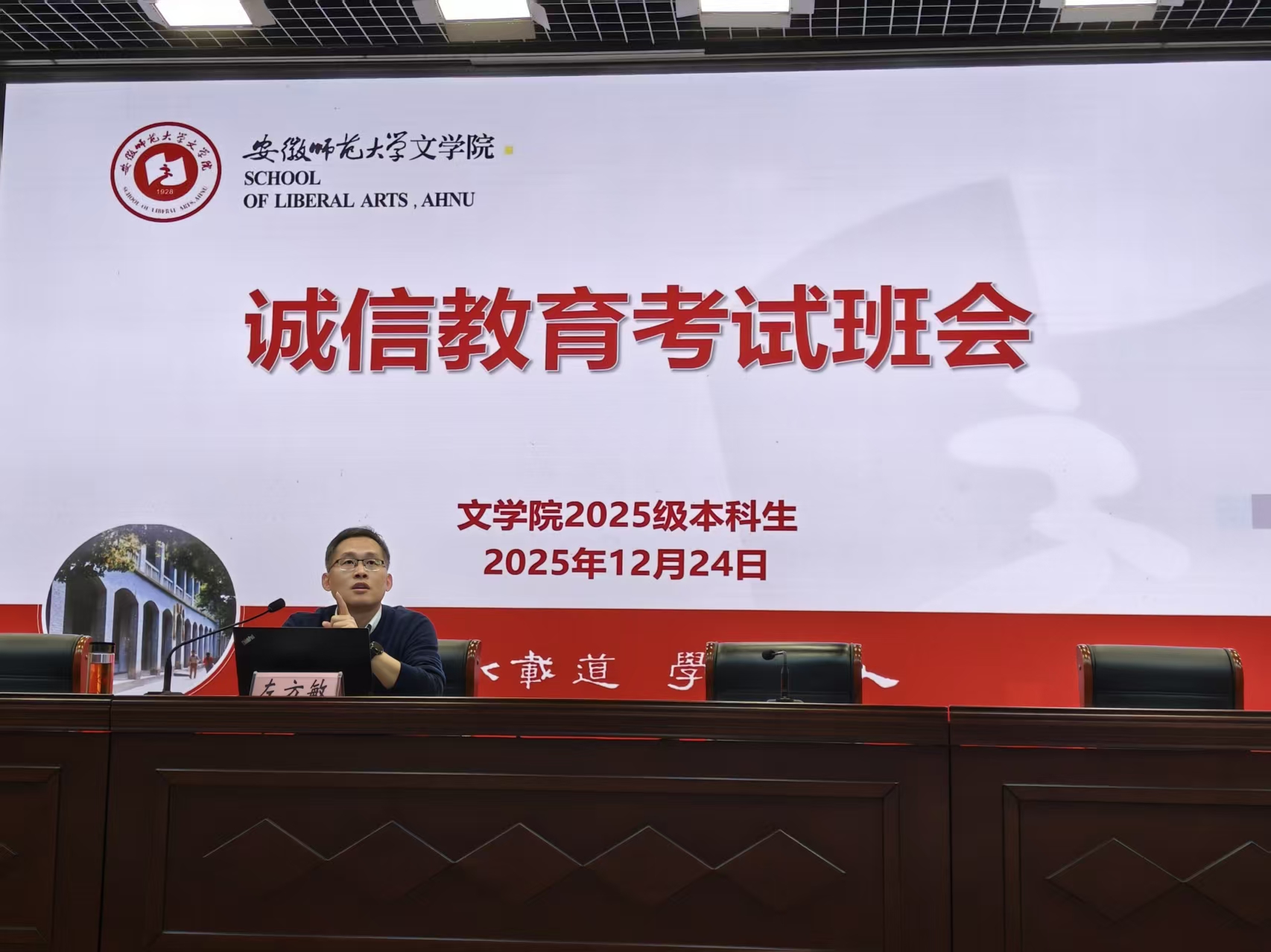 为筑牢诚信考试思想防线,12月24日下午,必赢线路检测3003no1于理科大楼报告厅召开2025级本科生诚信教育考试主题班会。院党委副书记左方敏、辅导员及全体本科生共同参会。班会由辅导员吴佳惠主持。