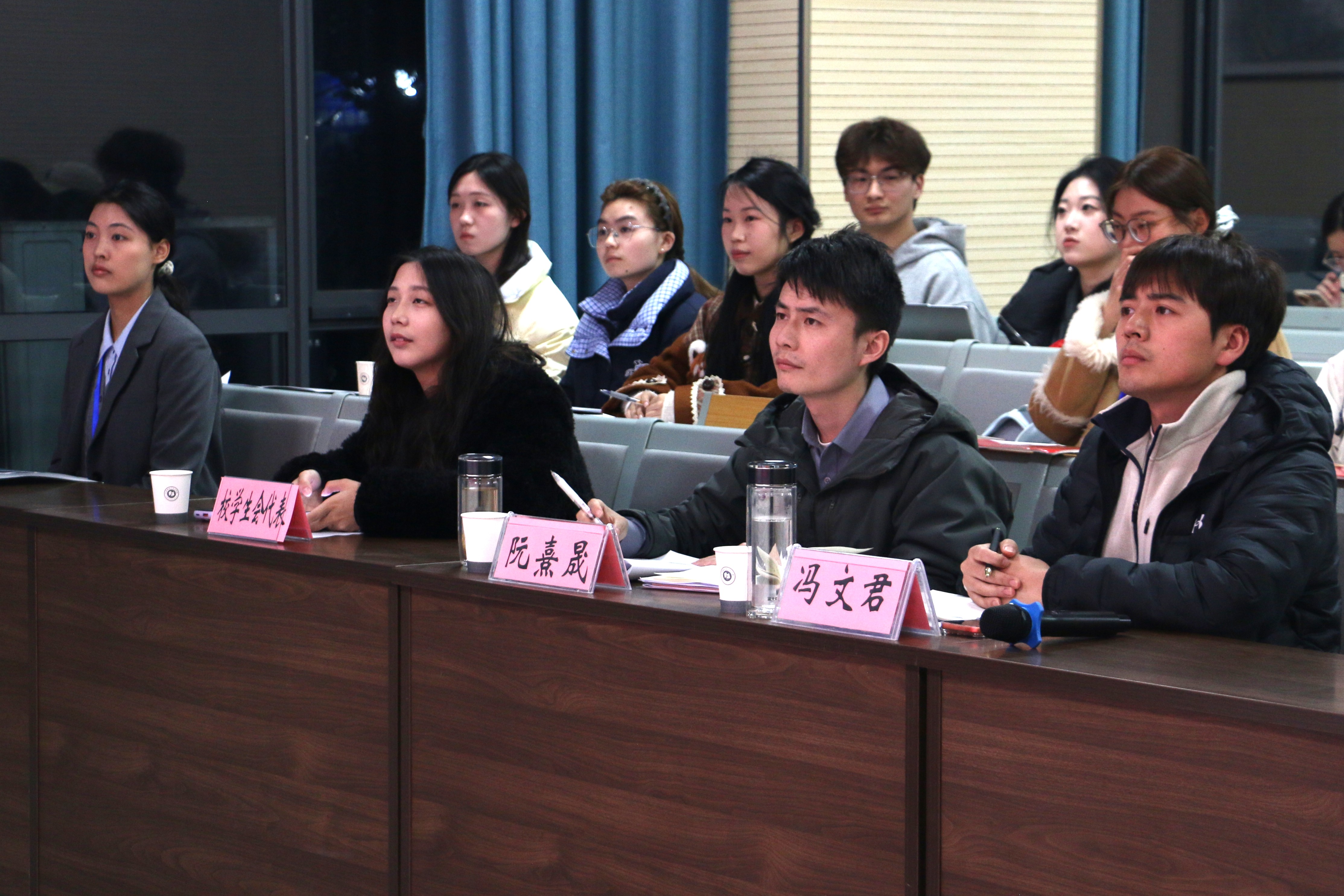 3月19日晚,必赢线路检测3003no12025-2026学年学生组织工作人员述职评议会在文典楼F108报告厅举行。学院团委书记阮熹晟、团委副书记冯文君、校学生会代表参加会议。会上,各学生组织负责人依次进行工作汇报。