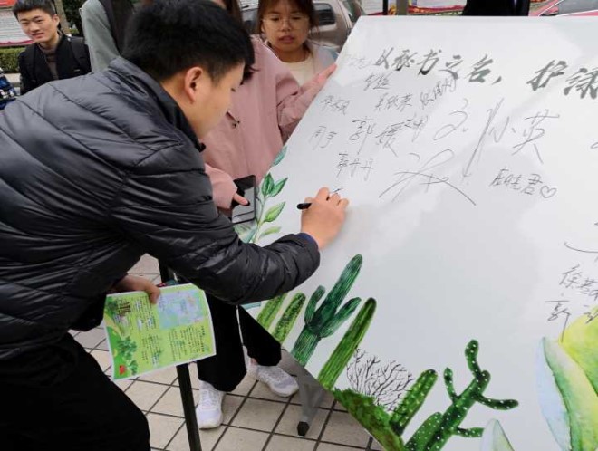 三月,是“学雷锋”活动月,同样也是世界森林日、世界睡眠日以及世界水日等系列环保节日的密集时段。为此,2018级秘书学班策划了一场主题宣讲活动,以开展环保宣讲为重点,并分发倡议书,在宣讲活动的过程中,号召同学们在展板上签下自己的名字,希望大家会以实际行动积极参与绿色健康生活,践行低碳环保理念。
