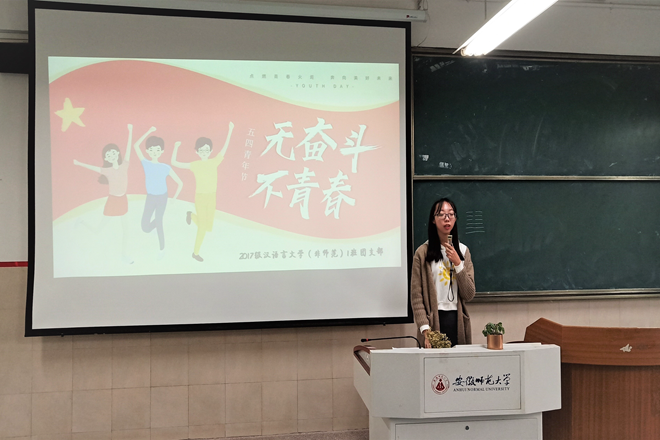五四运动以来,一代代青年人正是用实践证明自己对人民、对国家的价值。享受和平岁月的安徽师大学子们,更要踏踏实实致学,诚诚恳恳为人,树立切实的远大志向,夯实基础,一步一个脚印,方能走出灿烂的人生路,才能为中国特色社会主义道路的建设做出自己的奉献。(图/文 张士睿)