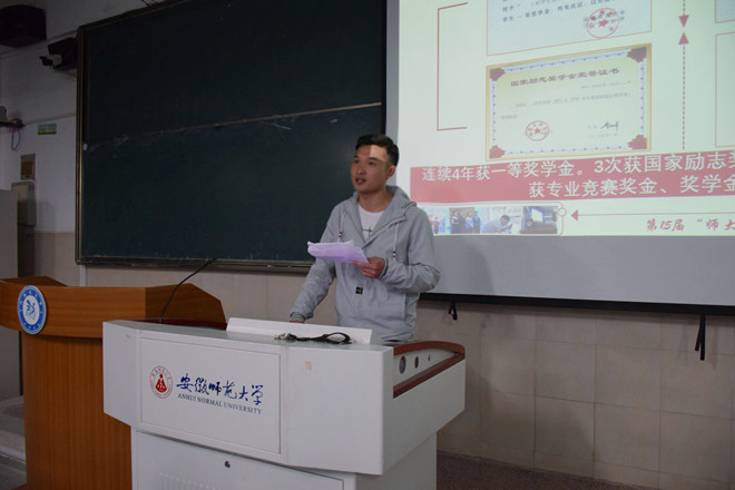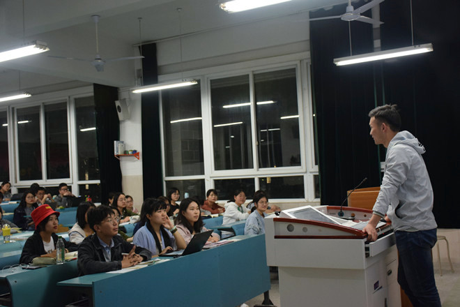 郭精金学长首先进行自我介绍并且回顾自己的大学生涯,就切身经历给同学们很多建议。郭精金学长表示,要重视传统文化,不仅是因为专业相关,更因为古人的智慧即使在今天依旧能够给我们带来思考;同时要多读书读好书,名家经典是不二之选,身体和灵魂总要有一个在路上;积极参加和专业有关的课外活动,拓宽视野的同时也能够锻炼专业技能……其后同学们提出了自己的困扰,郭精金学长都给予耐心解答,提醒道,大学生活里本来就应该有舍有得,清楚自己想要什么才能有更好的大学生活。