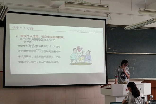 作为大学生群体,同学们有责任提高自我约束能力,树立正确的消费观念。不盲目借贷,合理控制借贷数额,更要重视个人信用,树立牢固的诚信观念。大学生的首要任务是学习,而不是享乐消费,“大家一定要抵制诱惑,端正学习态度,树立坚定的学习观。”团支书向大家强调,并为大家播放校园不良网贷微电影《贷价》。理性借贷,才能减少为此付出的代价,只有每位同学都重视不良校园贷的影响,才能让校园生活与安全同行。(文:张士睿)