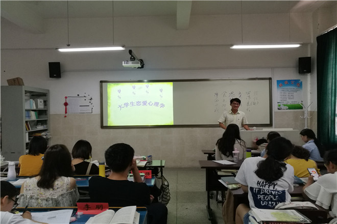青春是多彩的、律动的,也是宝贵的,每个人都只有一次青春。对于大学生来说,四年的时光弥足珍贵,在这个人生观、价值观和世界观逐渐形成的阶段,我们不仅要刻苦学习、完善自我,也不能忘记认真对待每一种感情,尤其是尚显懵懂和单纯的恋爱。“5·25”全国大学生心理健康日即将到来之际,17级卓语于5月24日在2010201A教室开展特色班会,心理委员李蔚与全体同学一起讨论了“大学生恋爱心理”。