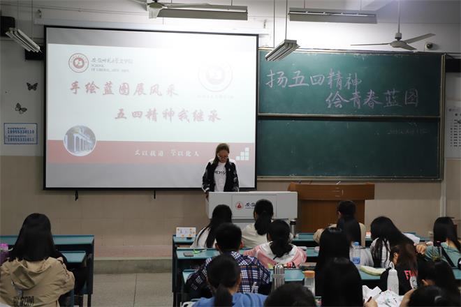 寻源五四,演讲诉衷肠。知识竞赛结束后,文娱委员张鸽进行了演讲《对话五四,初心不改》。“那一刻我才见识到青年人的力量,那是最纯粹的火焰,跳动着的,永不会熄灭的”,她这样形容五四运动中的青年学生。她从五四运动说起,又谈到以“爱国、进步、民主、科学”为核心的五四精神,最终提及当代青年人。“青年人,凉不了热血,暗不下眼神,退不了步伐!”张鸽同学的演讲慷慨激昂,强烈感染了大家。同学们表示深受鼓舞,要加倍努力,砥砺奋进,承担起作为新时代青年人的使命!