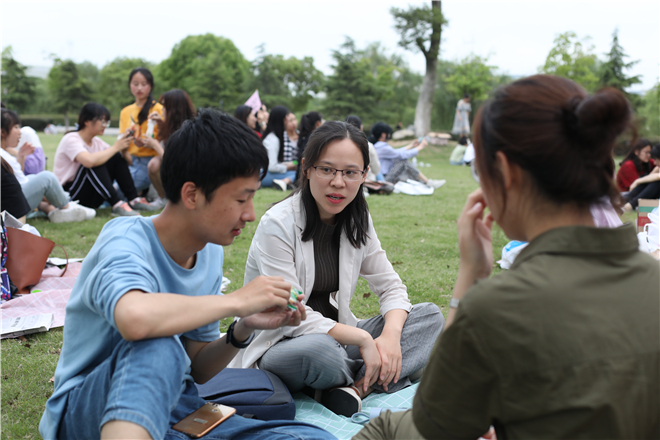 醉人五月,精彩纷呈。为丰富同学们的课余生活,倡导健康的生活方式,引导同学们以积极阳光的心态面对挫折与压力。5月21日下午,2018级汉语国际教育专业在花津校区的草坪举办以心理健康教育为主题的特色趣味户外活动。此次活动由心理委员赵雨蝶主持,辅导员朱露露老师受邀前来,18汉教全体同学参加。