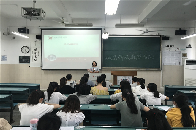 5月24日下午四时许,2018级汉语国际教育举办以“诚信还贷,感恩成长”为主题的诚信教育讲坛。旨在宣传国家助学贷款及其他资助政策,普及征信及信用知识,进一步提高同学们的诚信意识,培育诚信品质,助力诚信守信的校园文化建设。本次活动由班长王玥主持,全体班委及班级受资助的同学参加。