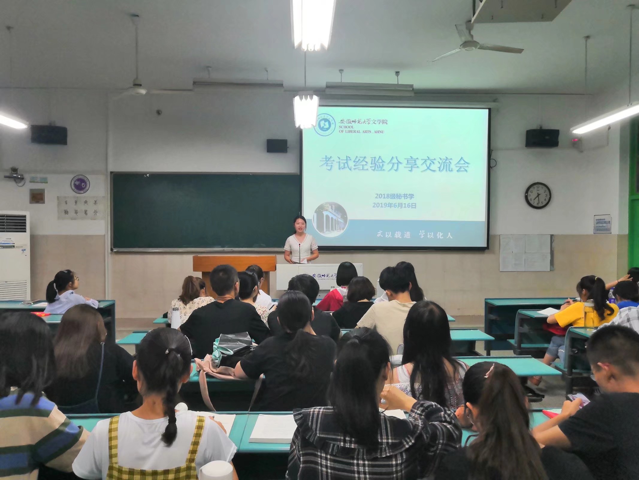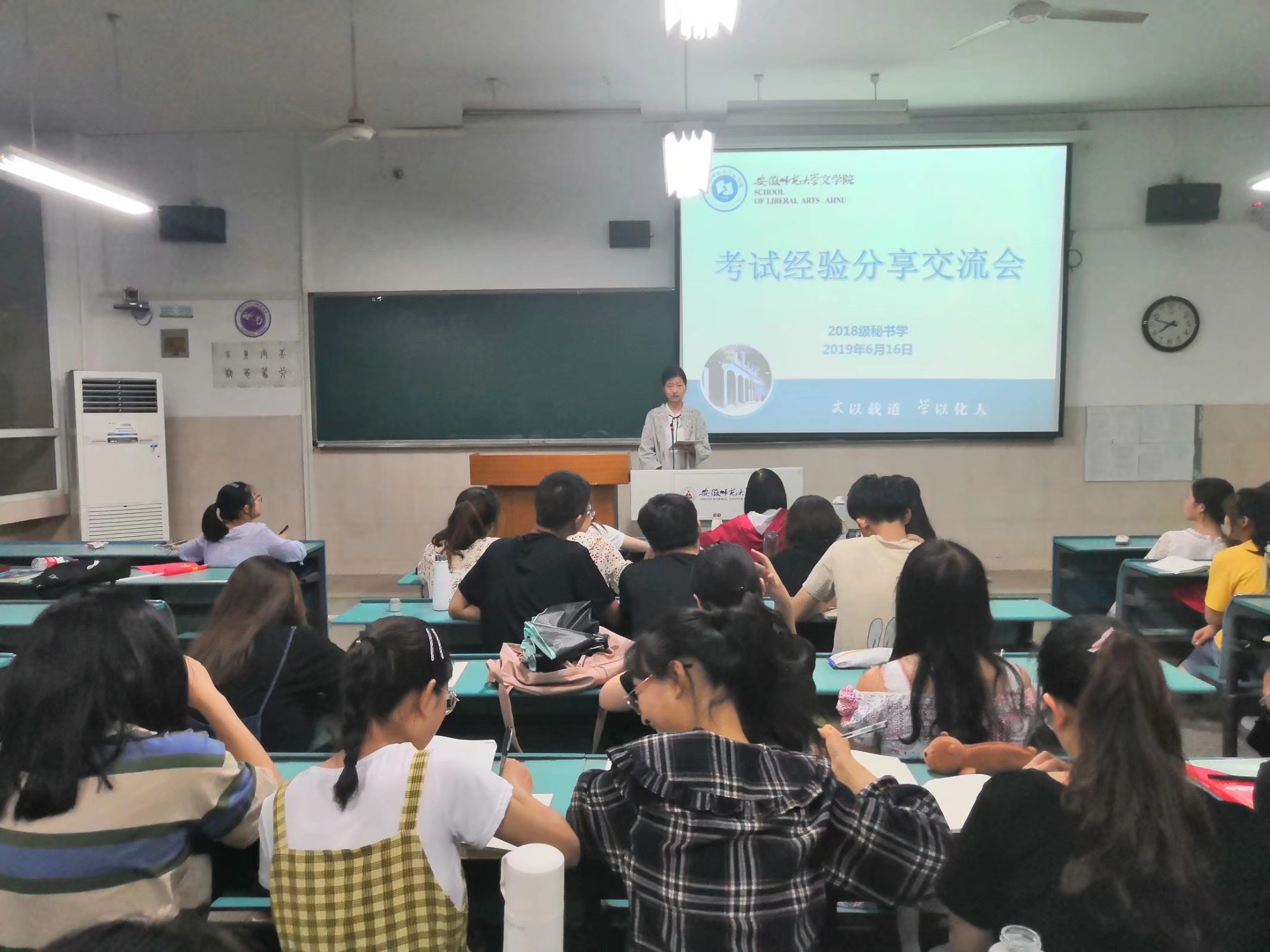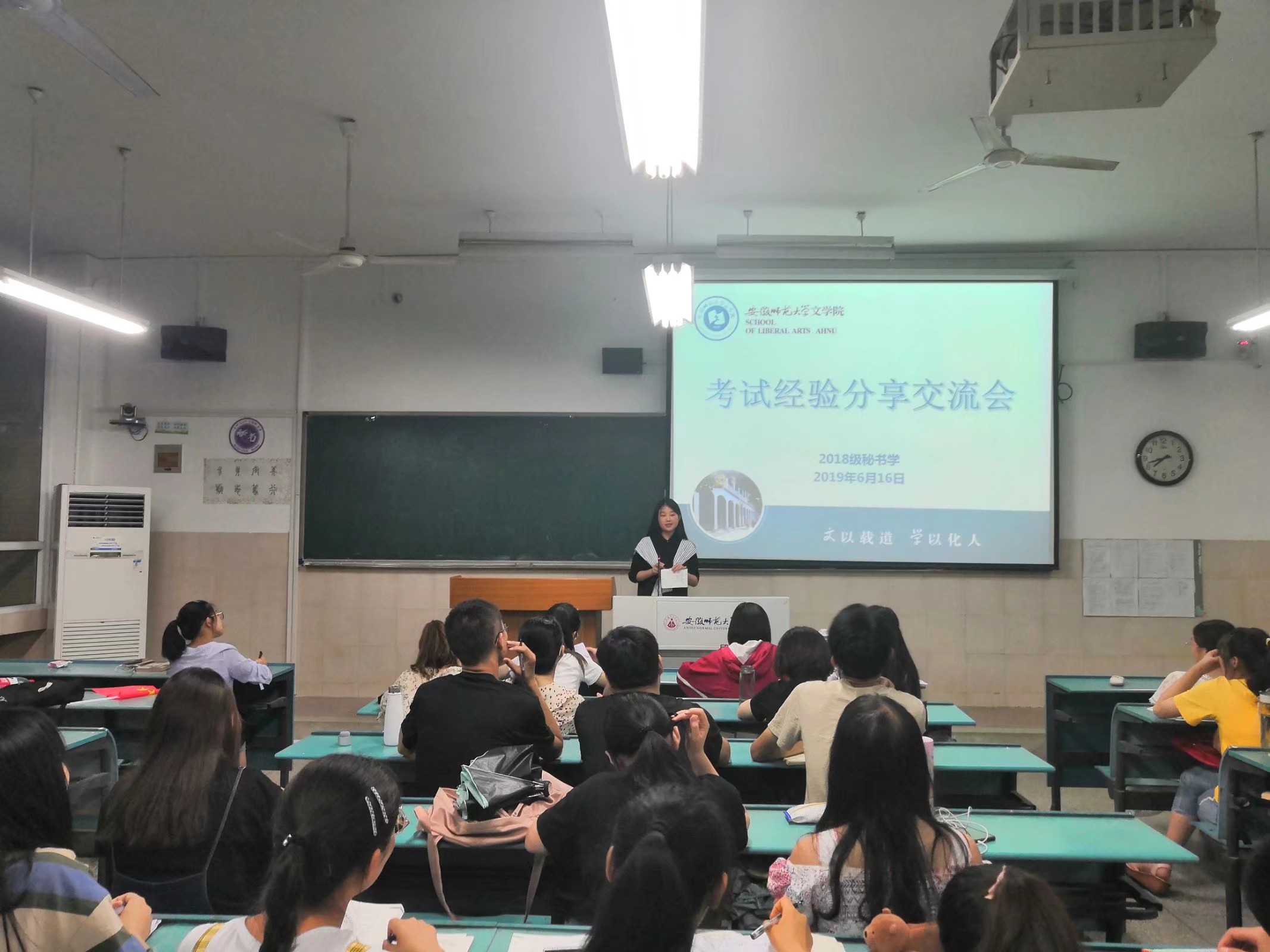 为帮助同学们更好地复习,迎接期末考试,6月16日晚,2018级秘书学班在行知楼2050501教室成功举办考试经验分享交流会。此次交流会由班长丁文艺主持,2017级秘书学专业的胡雅志、夏俊杰、丁玉莹三位同学应邀进行经验分享,全班同学到场聆听。