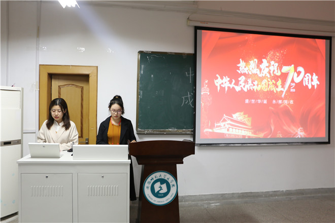 活动伊始,同学们通过一段视频共同回顾新中国七十年的风雨征程,感受盛世的来之不易。在趣味横生的有奖竞答环节,同学们踊跃参与、积极作答与国庆有关的系列知识问答题,展现了汉非学子对于祖国发展历史的了解与认同。互动环节后,班级六个团小组围绕“家乡变化”、“社会发展”、“个人感受”等多个方面对新中国成立七十周年展开汇报,汇报采用PPT与现场解说相结合的方式。一小组立足交通工具的演变,沿着历史发展轨迹,展现新中国成立以来科学技术的不断进步以及基础建设的卓越成就;“山河无恙,国富兵强。”三小组总结家乡各地举办的庆祝活动,感受来自不同地方传递的祝福与喜悦,在举国欢腾的氛围下,表达心中的希冀与感动;从繁华艳丽的汉街到底蕴深厚的南京,再到安宁沉静的苏州,五小组着眼于旅途中的风景,欣赏每一处美好,收获每一份惊艳,用心期待更好的祖国。汇报结束后,团支书夏晓晓进行总结,鼓励同学们去多了解、多关注国家,不断成长自我,与祖国共同奋进。