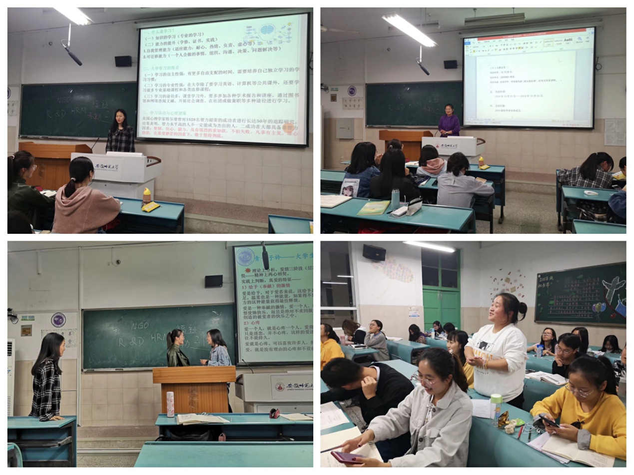 “大二是一段新的旅程,是我们学习、生活的新起点。”在心理班会上,刘小英从学习心理、恋爱心理两个方面展开讲述,系统分析了大学学习的特点、什么是科学的学习观、如何去培养学习能力等问题,鼓励同学们努力学习、努力生活、努力做事,以求最好的发展。并以“爱情三阶段”为契机,分别讲述了生理上两性相吸、情感上两情相悦和精神上两心相契,提醒大家:爱是一种能力和艺术,要提高自己爱的能力,她希望大家能正确地面对和处理爱情。