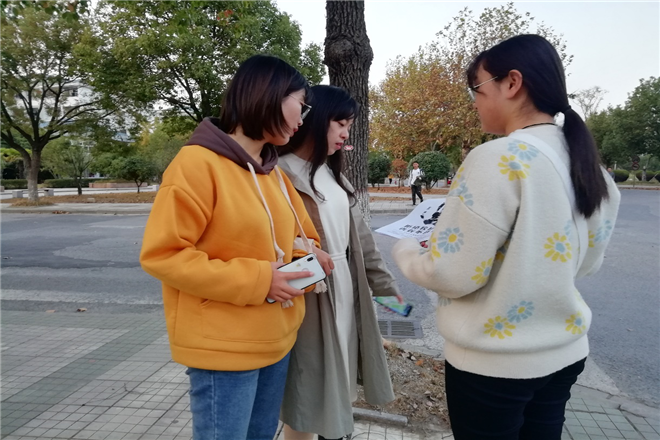18汉非6个团小组以团支部为中心,在校园内开展了形式多样的宣传、教育活动。三小组举行志愿宣讲会,为同学们列举了因校园贷引起的各类恶性案件,同学们认真听讲,并对这些案件发表自己的看法;五小组自愿成立一支宣传志愿者队伍,向校园内的同学们发放宣传单,讲述校园贷危害,同时鼓励同学们树立正确的消费观,科学制定消费计划;一小组全组参与拍摄宣传视频,科普校园贷的有关知识,并提出购买物品时自备购物袋、不使用一次性产品等具体可行的绿色消费建议;二小组制作了预防校园贷主题的海报,列举校园贷危害,同学们纷纷在海报上签名,承诺坚决抵制各类不良校园贷,养成合理消费习惯。