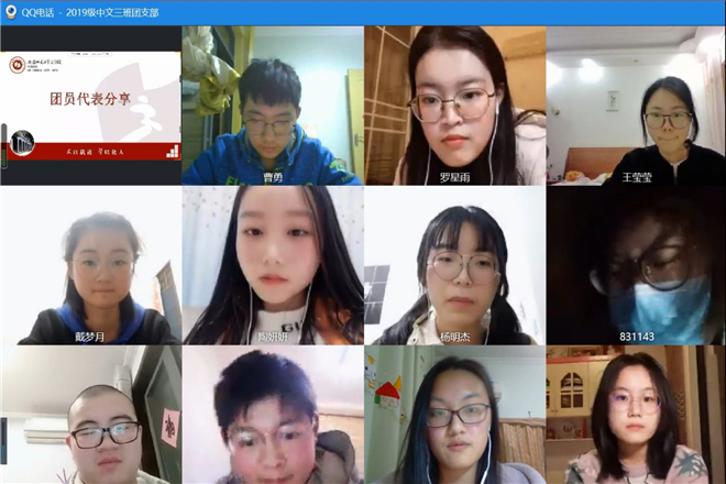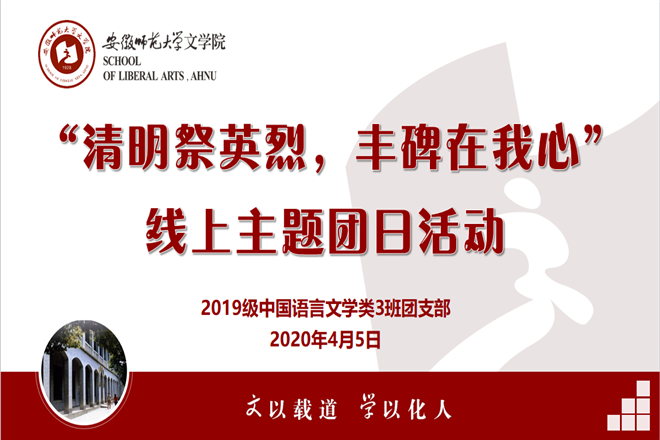 为了缅怀在抗击新冠肺炎疫情中牺牲的烈士英雄,2020年4月6日晚,2019级中国语言文学类3班团支部以网络视频会议的形式开展主题为“清明祭英烈,丰碑在我心”的团日活动。团支部书记谢铭主持此次线上团日活动,3班全体同学参加。