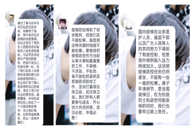 众志成城,共克时艰。面对来势汹汹的疫情,无数优秀中华儿女将生死置之度外,令人动容。举国上下共同祭奠每一位牺牲在一线的用生命挽救生命的伟大抗疫勇士。十四名的首批防疫烈士在名单上熠熠生辉,照射出他们英勇伟大的灵魂。根据班级团支书林颖的介绍,同学们了解到了这些烈士背后的故事。例如李文亮,他是武汉市中心医院眼科主治医师,他不顾个人安危,冒着风险依然坚守一线岗位,最终不幸被感染而殉职。在听完他们的故事之后同学们感慨道;“无数具体的为疫情做出贡献的人都是可爱的,都是可贵的,这些善良的人的珍贵精神将永垂不朽。”