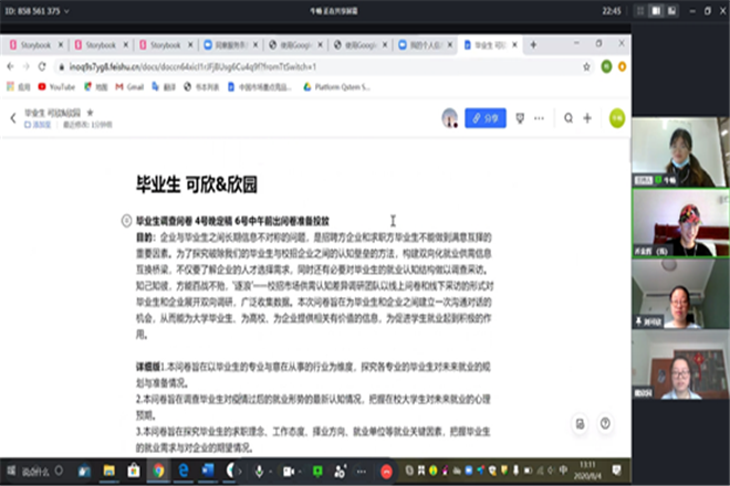 活动即将实施之前,队长牛畅召集团队成员开展了就“毕业生访谈工作统筹规划”为纲领的线上会议,本次会议中,经团队成员的集体讨论和协商,一致确立了本次访谈的两大维度——直接就业人群与先考研后就业人群,并结合此前样本中收集到的有关毕业生就业意向的数据,通过层层筛选,最终确定了本次访谈的对象。
