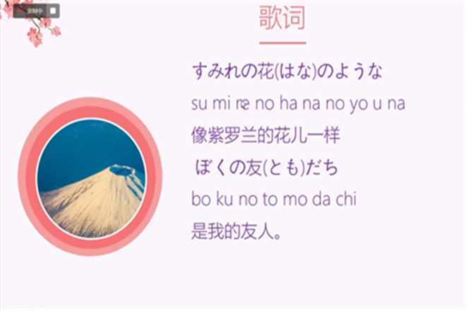 学习完日语的入门知识,团队派出甄慧队员教孩子们唱一首好听的日语歌。《四季歌》是一首歌颂纯洁真挚而深情的友情、亲情、爱情的日本民谣歌曲,旋律优美,传唱度高。由于歌曲学习既要学旋律又要学读法,所以甄慧队员选择了春的部分进行教习。队员和小朋友们一起歌唱,在歌声中结束了一天的活动。