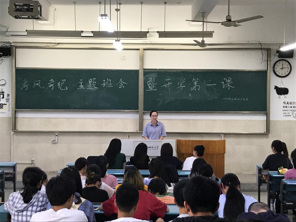 最后,对于现已步入大学三年级的18级同学,朱老师强调要针对个人发展情况查缺补漏,巩固专业知识,锤炼专业技能,要积极考虑、提前谋划未来发展方向。而对于17级学生,朱老师就本学期考研和就业两方面重点工作作了指导,她指出,当前考研形势严峻,有考研意向的同学要积极备考,同时也要量力而行,多参考老师和学长学姐的经验,及时收集有效信息,合理安排考研计划,全身心投入争取考出理想的成绩;准备就业的同学要早做打算,明确就业方向,更要及时关注班级群、学院就业指导群、招就处网站推送的就业信息,把握机会,争取早日找到心仪的工作。