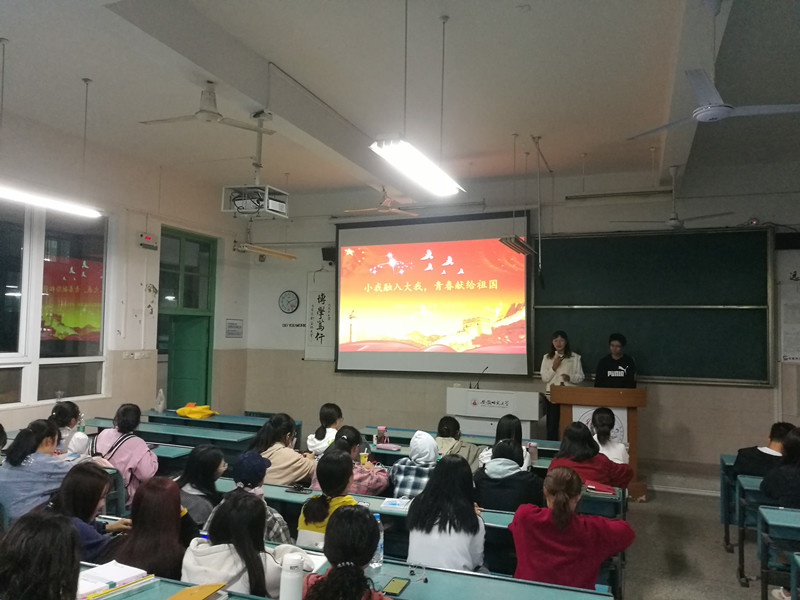 为弘扬伟大的爱国主义精神,2020级中国语言文学5班团支部于1019日晚7点在2050202教室举办 小我融入大我,青春献给祖国主题团日活动。