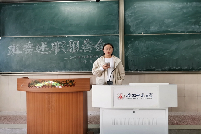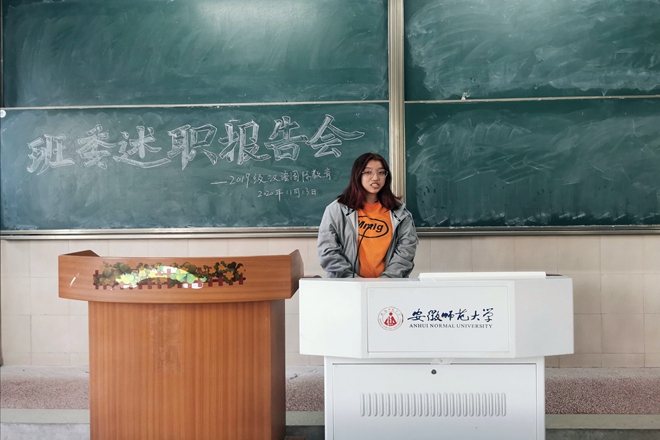 为增强班级凝聚力、完善班级体建设,2019级汉语国际教育专业于11月13日下午四点,在班级固定教室开展“班委述职报告会”活动。必赢线路检测3003no1辅导员瞿陆子慧、2019级汉语国际教育专业全体同学准时到场参会,会议圆满完成且反响热烈。