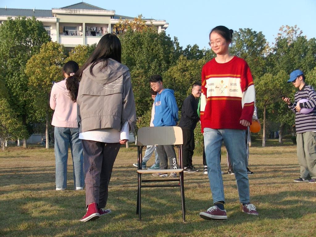 此外,还有精彩的“抢板凳”和“踩气球”活动,部分同学觉得玩一轮结束不能满足他们的兴致,还向工作人员申请继续增加几轮。其中,“抢板凳”项目在工作人员播放的音乐声中进行,既舒缓了紧张的氛围,又增加了游戏的趣味性。随后的“踩气球”活动更是考验了同学们的默契度以及身体的协调性。这两项活动皆参与的戴梦月这样和同学们分享道:“在我看来,‘抢板凳’需要同学们有良好的心理素质,沉着冷静然后准确入座;而‘踩气球’由于是两人三足,则更加需要团队协作能力。相比于游戏本身,我认为从中学到的东西更重要。”