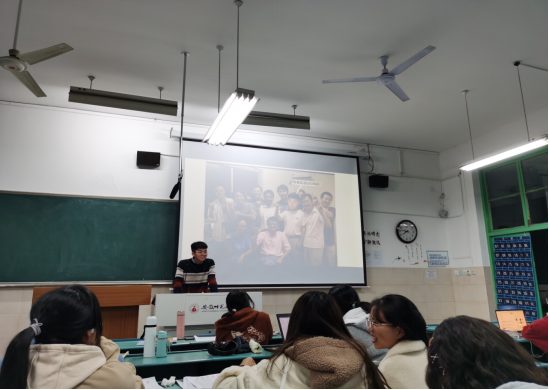 会议伊始何鹏飞以一张传销人员惯用的骗人图片,出传销的话题。接着何鹏飞分别向同学们介绍了传销的定义,传销的骗术,传销的危害及遇到传销后的应对策略。介绍完理论知识之后,何鹏飞同学们播放了反传销微电影致命游戏——影片讲述了一对夫妻因接触传销后而家破人亡的故事,深刻揭露了传销的危害。