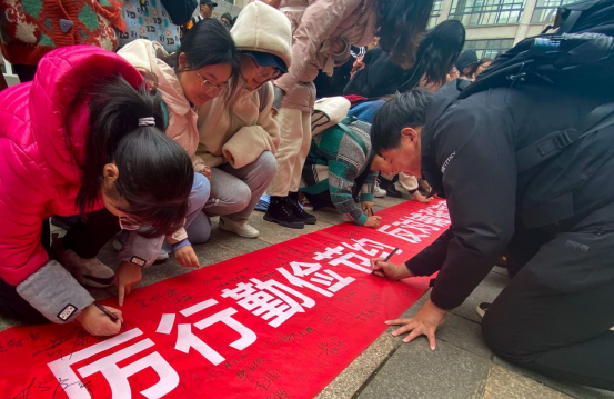 活动中,刁世硕作了《崇尚节俭,以俭养德》发言,号召全班同学牢固树立"积少成多、节俭为荣"的思想观念,做到"以勤养志、以俭养德",杜绝铺张浪费,杜绝盲目攀比,把节约当成一种积极向上的生活态度与生活方式。随后,带领全班同学共同宣誓:做到时时节约、事事节约,以实际行动弘扬节俭美德。宣誓结束后,同学们深受鼓舞,踊跃参加了"厉行节约,反对浪费"的承诺签名活动。