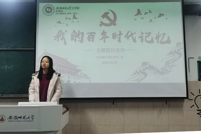 2020年是建成全面小康社会的关键之年,同时也是实现全面现代化的过渡之年。2020年12月2日晚7点,2019级汉语言文学1班在2050201教室开展了“我的百年时代记忆”主题团日活动。此次活动由团支书杨怡青主持,班级全体同学参加。