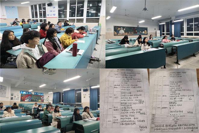 指出不足,在自省中总结。本次讲课较上一次,更加专业正式,汉语言文学1班邀请汉语言文学师范专业本科生党支部的党员黄静、吴俊奇、张茹、方恺(2017级汉语言文学专业)担任评委,对学生的表现进行点评。在本次试讲中,同学们总体表现较佳,但还有进步的空间。汉语言文学3班邀请了2018级汉语言师范专业伊霜霜、王千惠、胡树亮三位同学担任评委,他们对试讲的同学逐个进行点评,并提出应多多注意板书书写的规范性、说课过程详略等问题,且个别同学有些紧张,语速较快,缺少互动。同学们也表示会裨补缺漏,找到不足并自我反省,以提高自身说课水平。
