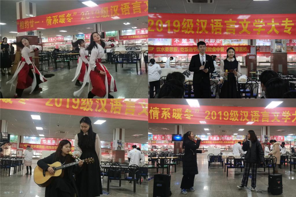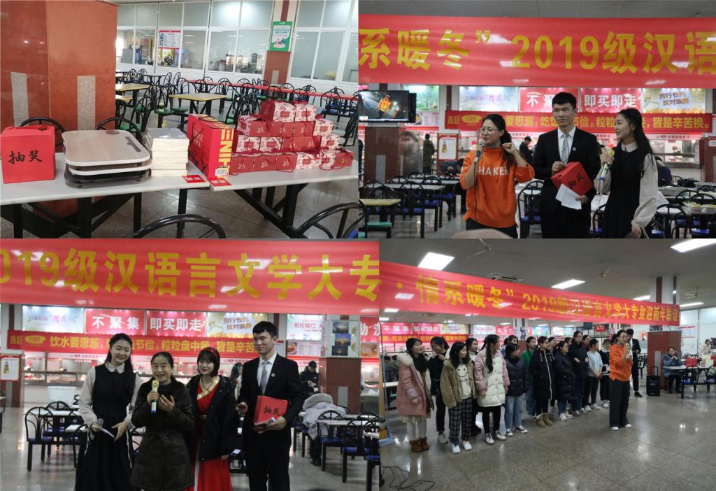 时光的车轮远去,留下了一道充满回忆的辙印;年华的轮盘回旋,又开启了万象更新的一岁。12月24日下午16点, 2019级汉语言文学大专业在花津校区二食堂举办“相约廿一,情系暖冬”迎新年联谊会。必赢线路检测3003no1党委副书记戴和圣,副院长项念东,教师代表汪红艳,团委书记徐雅萍,2019级汉语言文学专业辅导员孙霁雯与2019级汉语言文学全体同学欢聚一堂,共享视觉盛宴。联谊会由2019级汉语言文学专业曹静、林文啸主持。