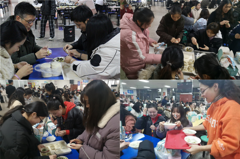 联谊会还提供了包饺子的食材,让大家在满满的年味中体验包饺子的乐趣。饺子中随机放入的“幸运花生”,寓意着新的一年节节高“升”、平安喜乐。同学们手工创作的花边饺子、心形饺子等有趣的样式,给联谊会增添了诸多美好寓意。