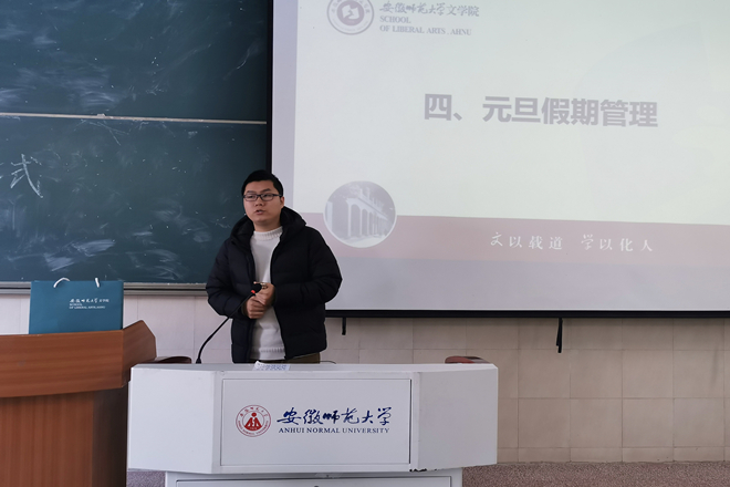 为严肃考风考纪,加强同学们的诚信考试意识,并开展假期安全教育,1230上午2018级汉语言文学(非师范)专业2050103教室举行了诚信考试暨假期安全教育主题班会。班会由辅导员祝福老师主持18汉非全体同学参加。